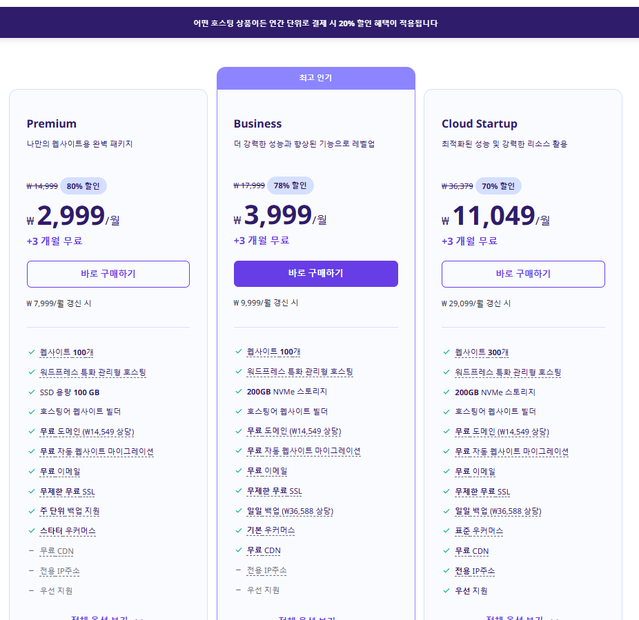 웹호스팅 솔루션을 고르고 완벽한 웹사이트를 만드세요! 공유 호스팅과 도메인 구매부터 VPS까지. 필요한 모든 게 준비되어 있습니다.