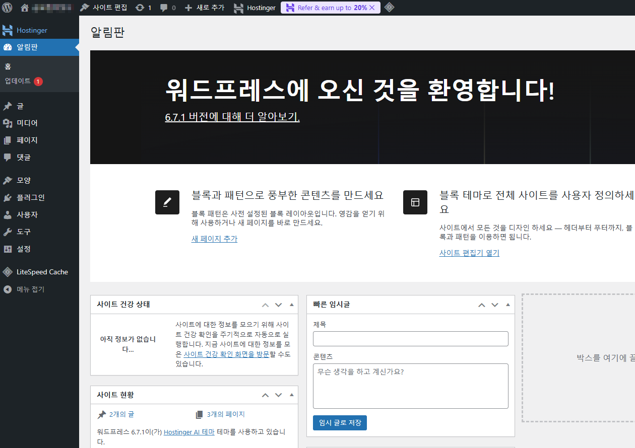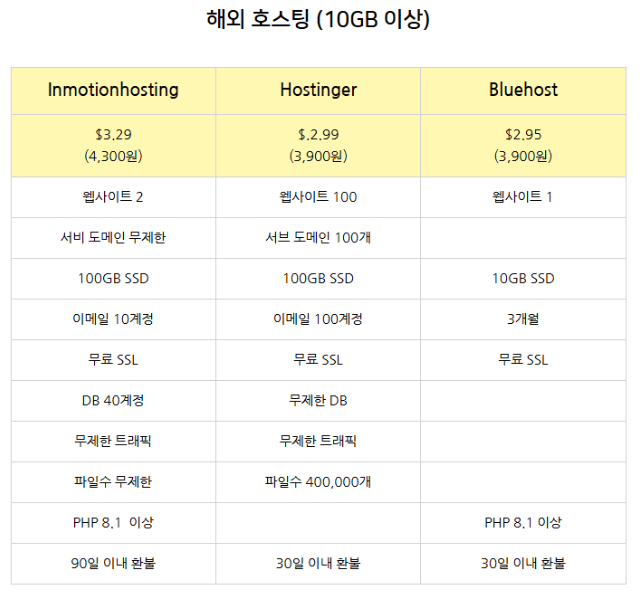 나는 호스팅어가 끌린다. 가격도 한달에 4천원 정도로 저렴하고