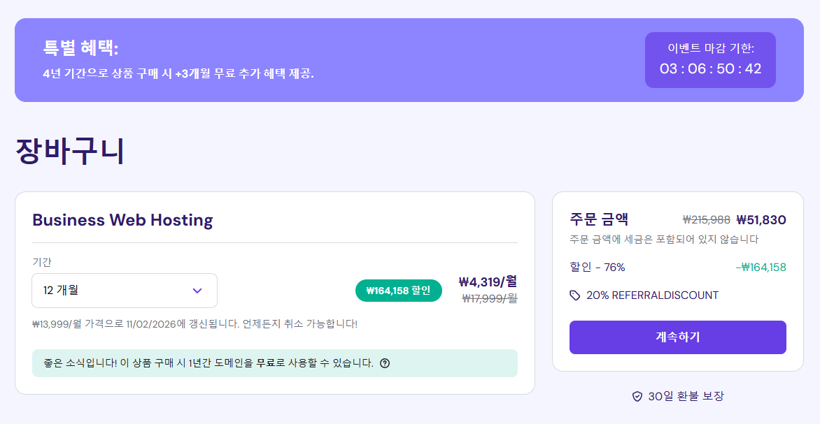 웹사이트 100개에 무료 도메인, 무료 SSL 도 준다고 함.
