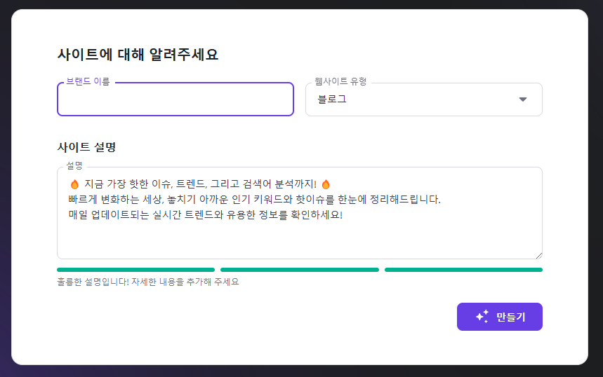 - CTA(Call To Action) 추가: "매일 업데이트되는 트렌드! 지금 확인하세요!"처럼 방문자가 지속적으로 찾아오도록 유도하세요.