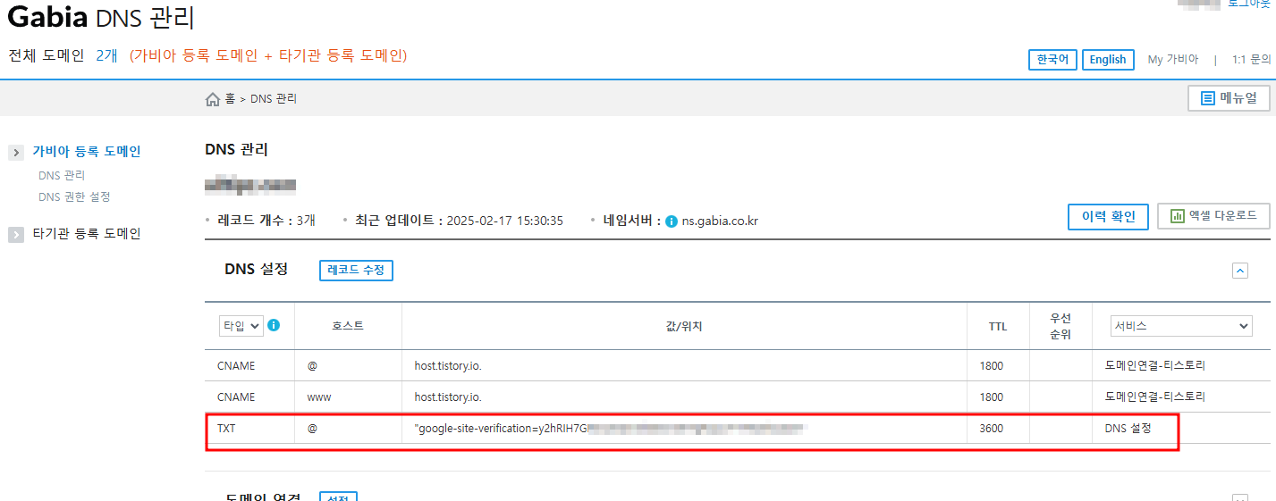 | 가비아 도메인 티스토리 연결하기 (2025년) (0) | 2025.02.17 |